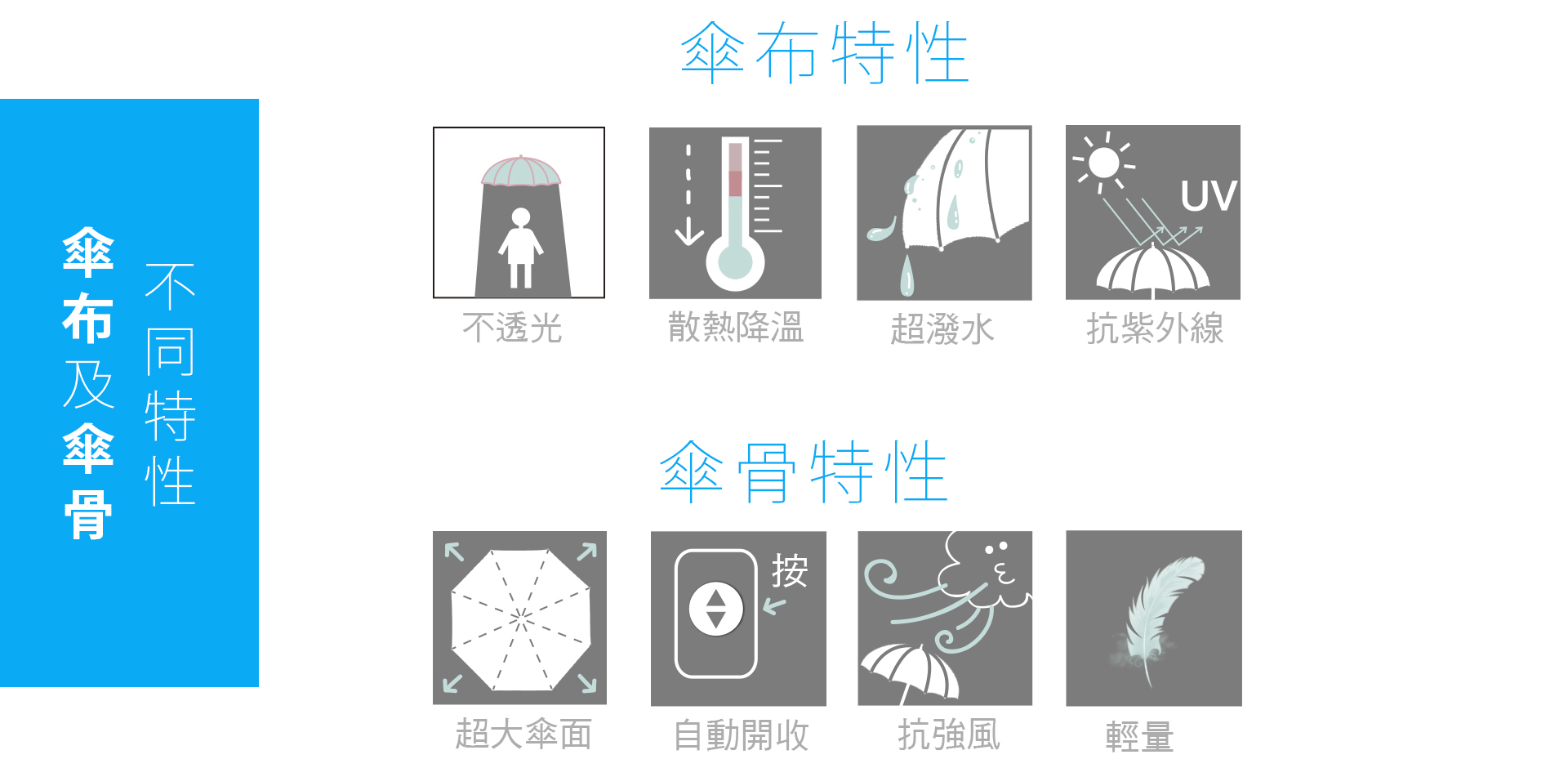 MIT台灣生產之抗紫外線傘布,