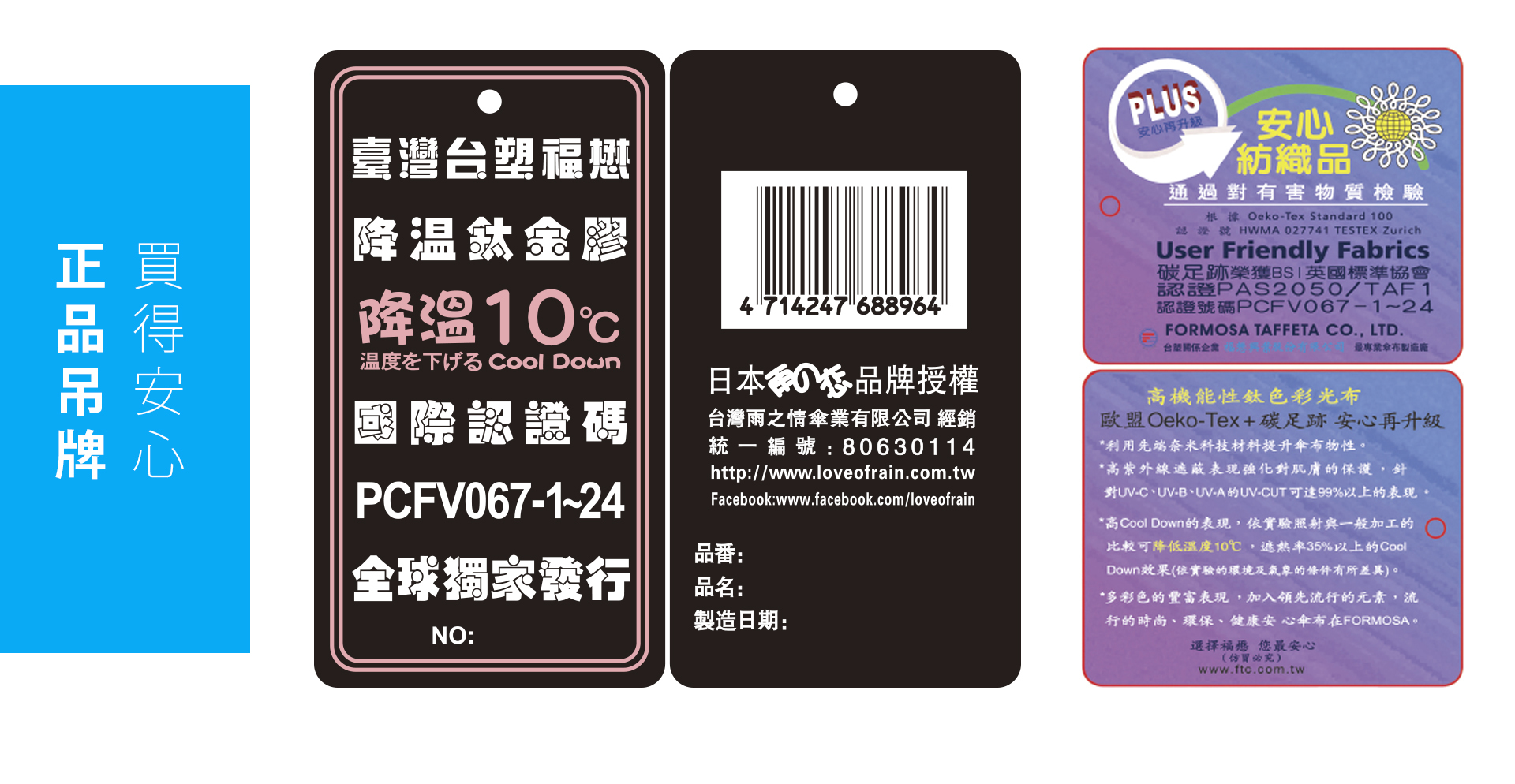 降溫10℃正品吊牌 / 福懋安心紡織品吊牌 皆附掛於傘套上