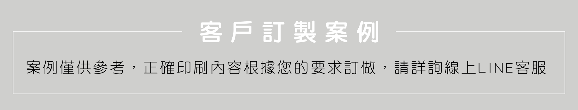 案例僅供參考,正確印刷內容根據您的要求訂做,請詳詢線上LINE客服。