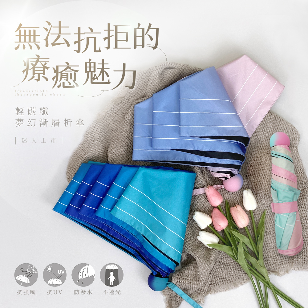 【超值免運組合】輕碳纖夢幻漸層折疊傘&羽量防曬百搭自動傘