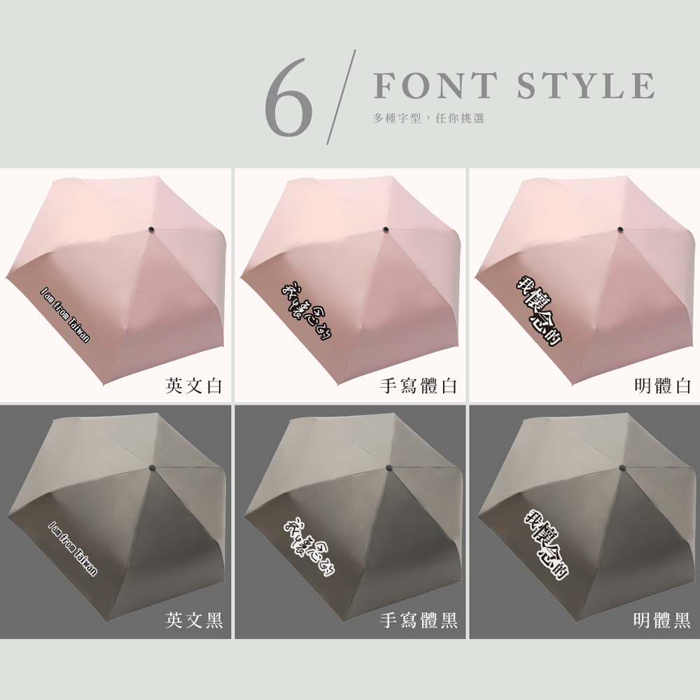 可以選擇喜歡的字型,搭配屬於自己的文字,幫您印刷至傘面上。