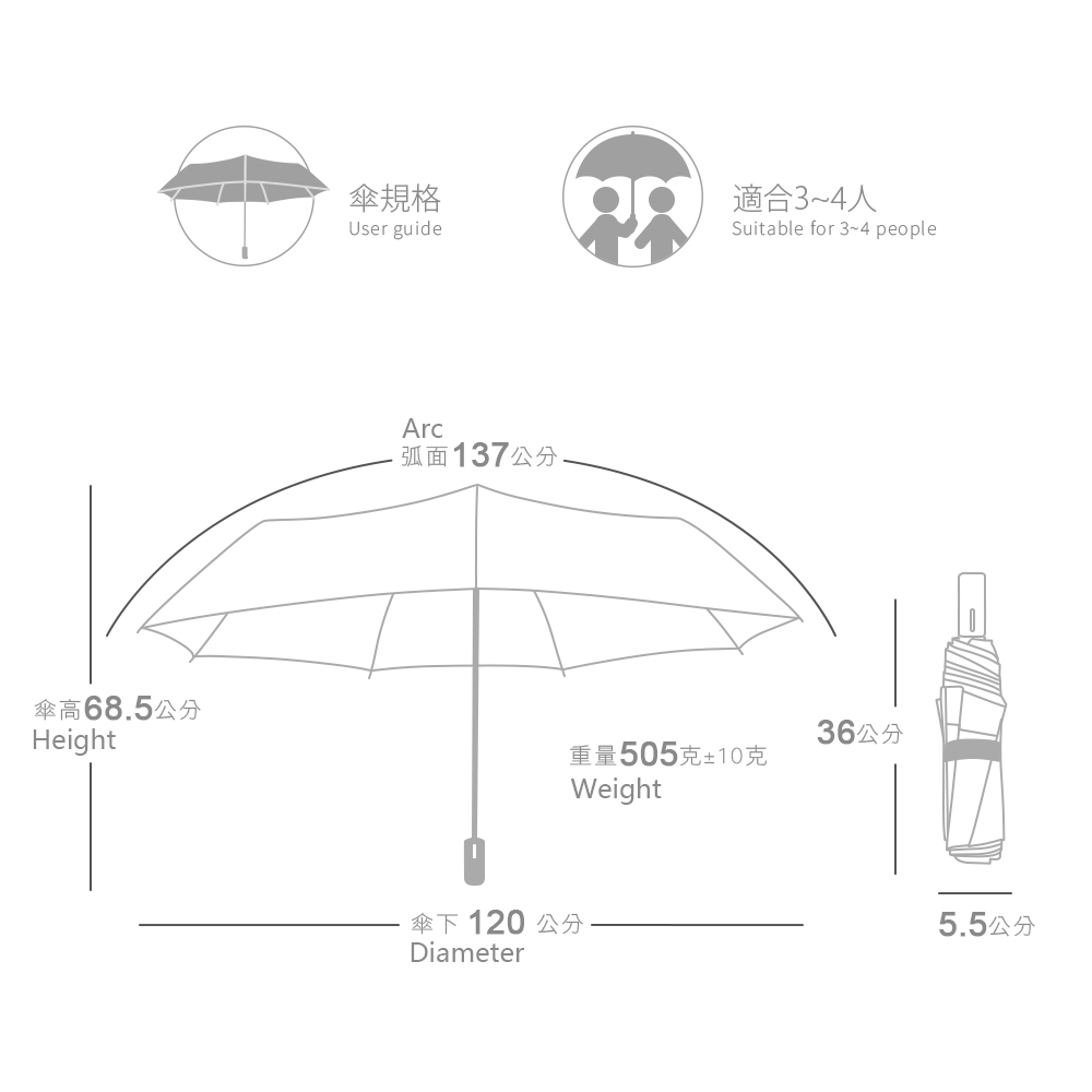 五級潑水極致快乾傘布,雨水輕甩不殘留