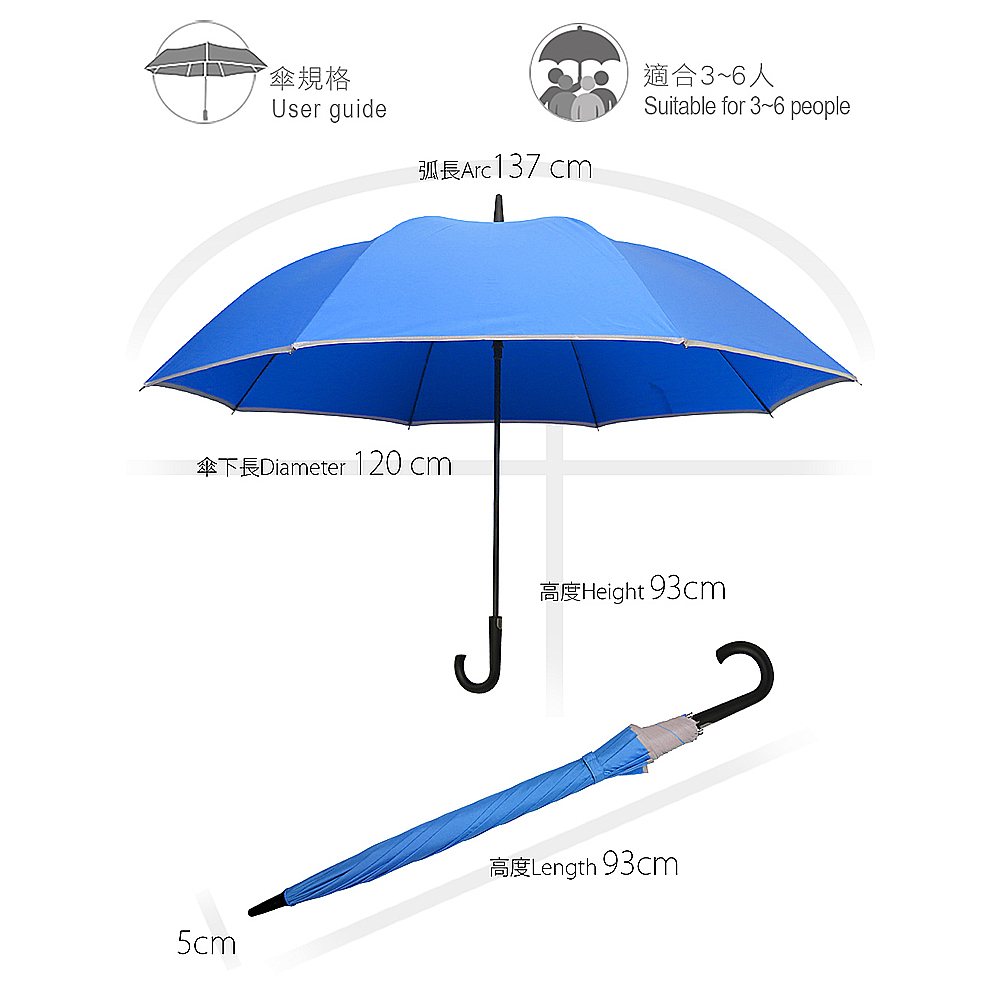 | 品 名 | 大大防雷擊反光傘 | 規格/重量 | 68.5cm x 8K / 537g ±10g | ||