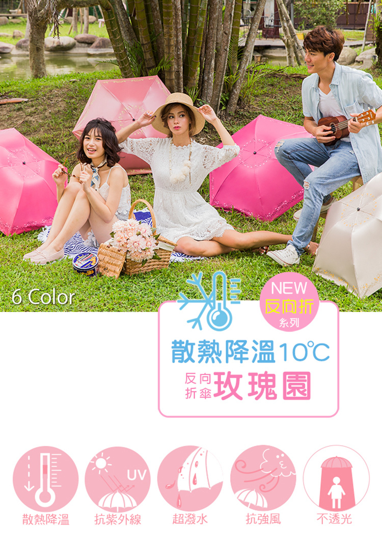 日本雨之戀 降溫10度C玫瑰園 反向折傘 6色-雨傘 反向傘 摺疊傘 晴雨傘 防曬傘 三折傘 折疊傘 防曬 陽傘