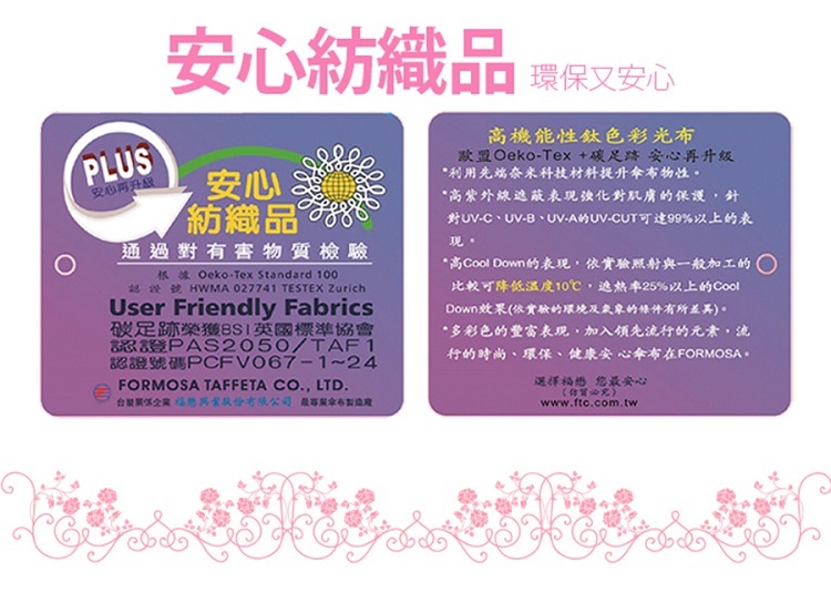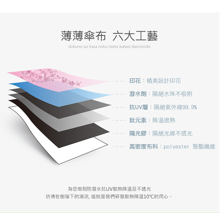 傘布材質:台灣福懋散熱降溫10℃鈦金膠100%