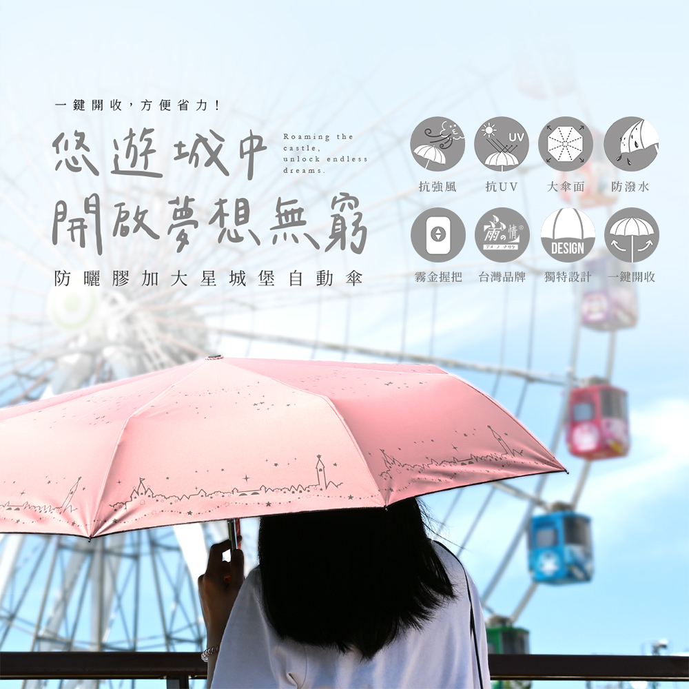 | 品 名 | 防曬膠加大星城堡自動傘 | 規格/重量 | 58cm x 8K / 380g ±10g |   ||