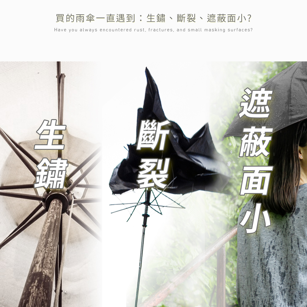 你買到的雨傘一直遇到:生鏽、斷裂、遮蔽面小?